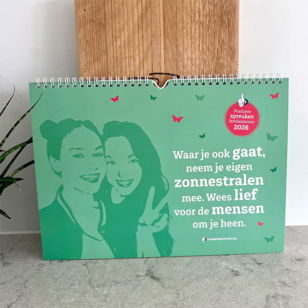 Wauw… positiviteit voor het hele gezin! Met trots stellen we onze super originele familieplanner 2026 aan je voor. Overzichtelijk en gemakkelijk. Met mooie positieve spreuken, een prachtige indeling en de zo gewaardeerde stickers. Kortom, leuk voor het hele gezin.